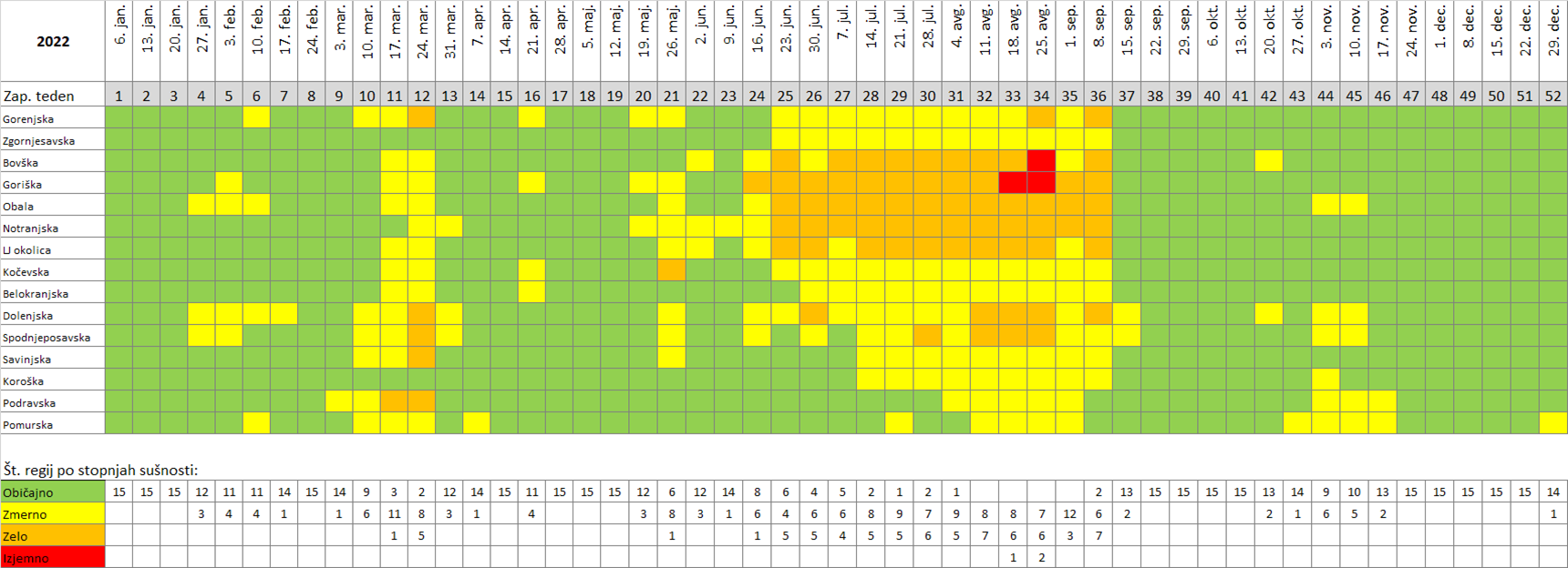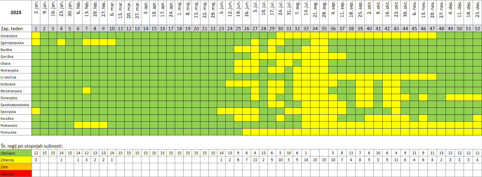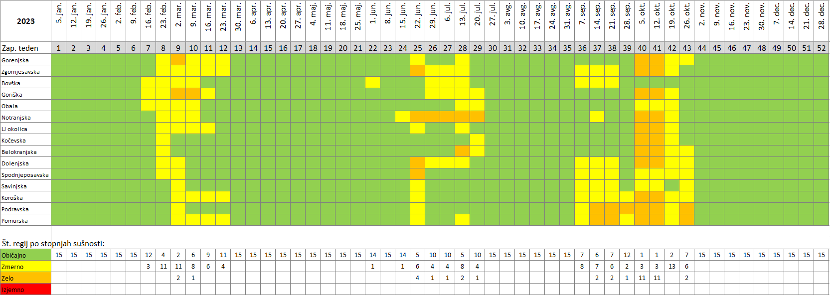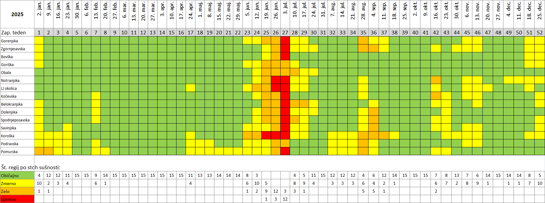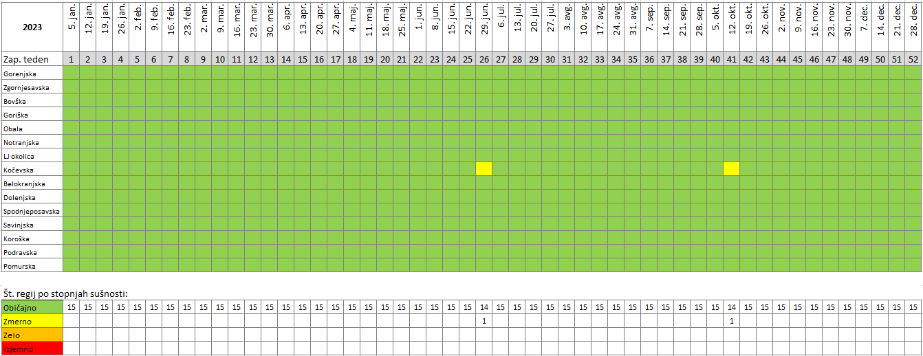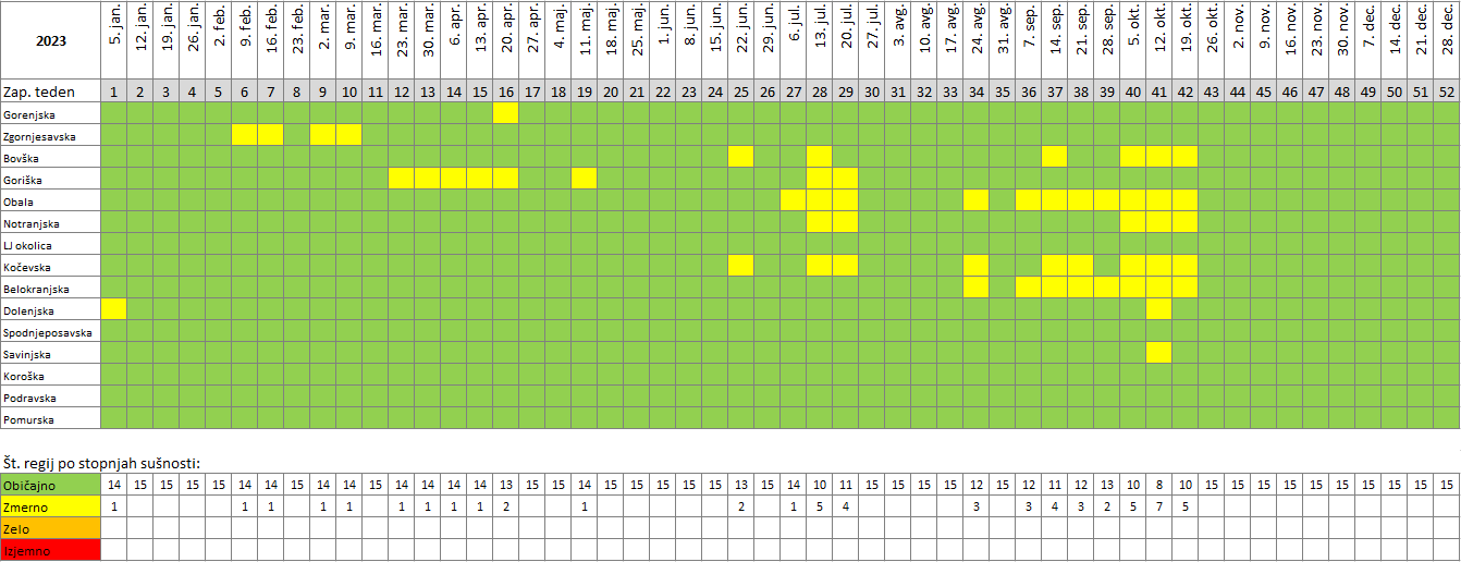 * Pri določevanju stopnje sušnih razmer za posamezno regijo se upošteva