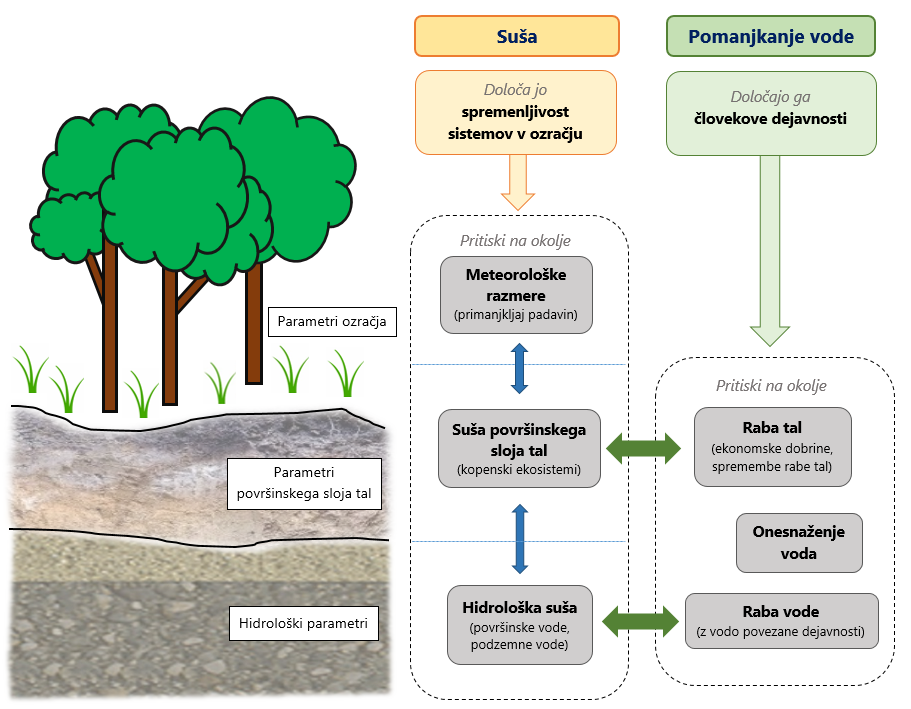 Razlika med sušo in pomanjkanjem vode ter njun vzajemen vpliv na povečanje obsega