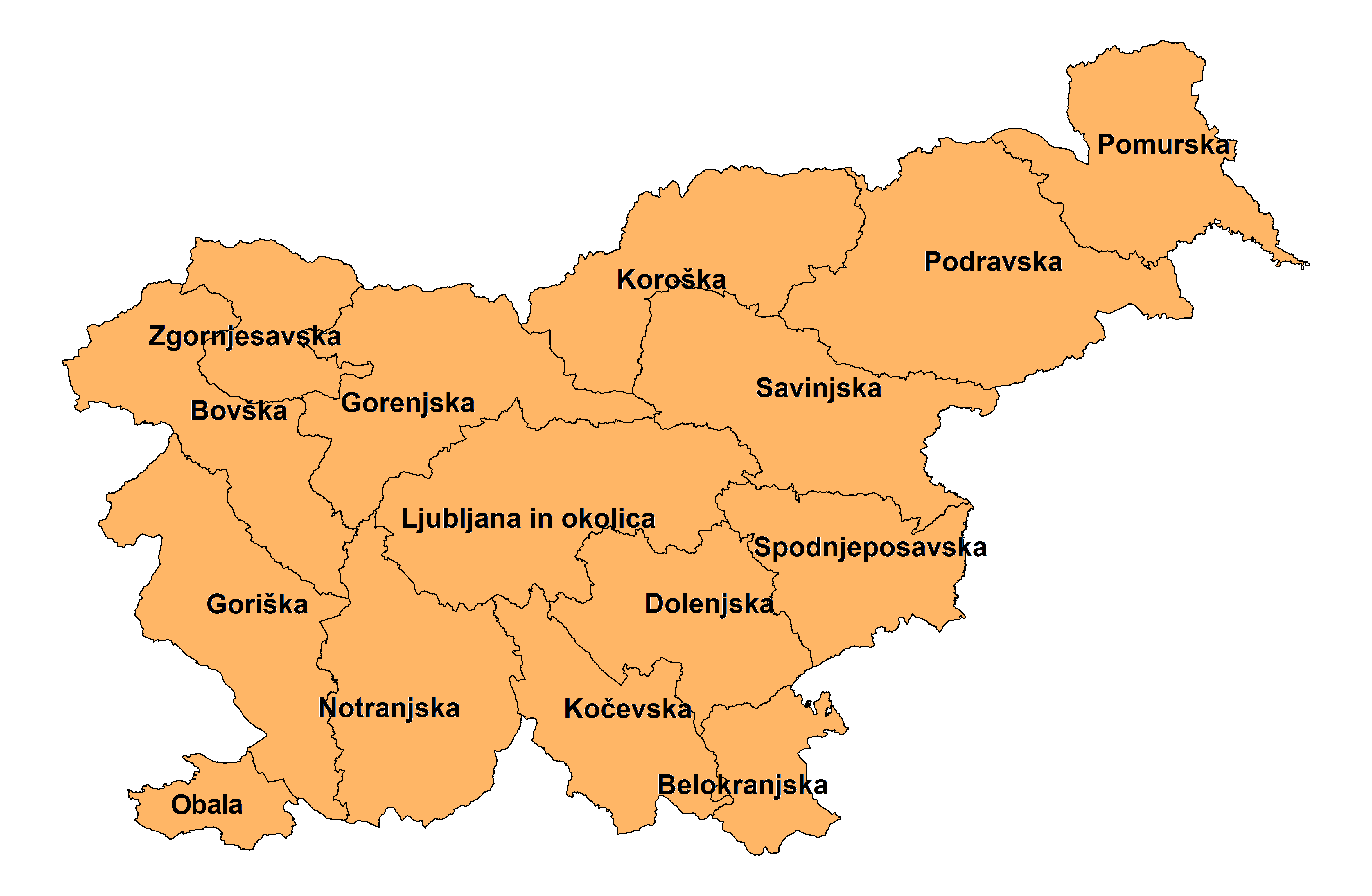 Razmejitev in poimenovanje regij sledita Arsovi prognostični razdelitvi Slovenije. Poudarek takšne