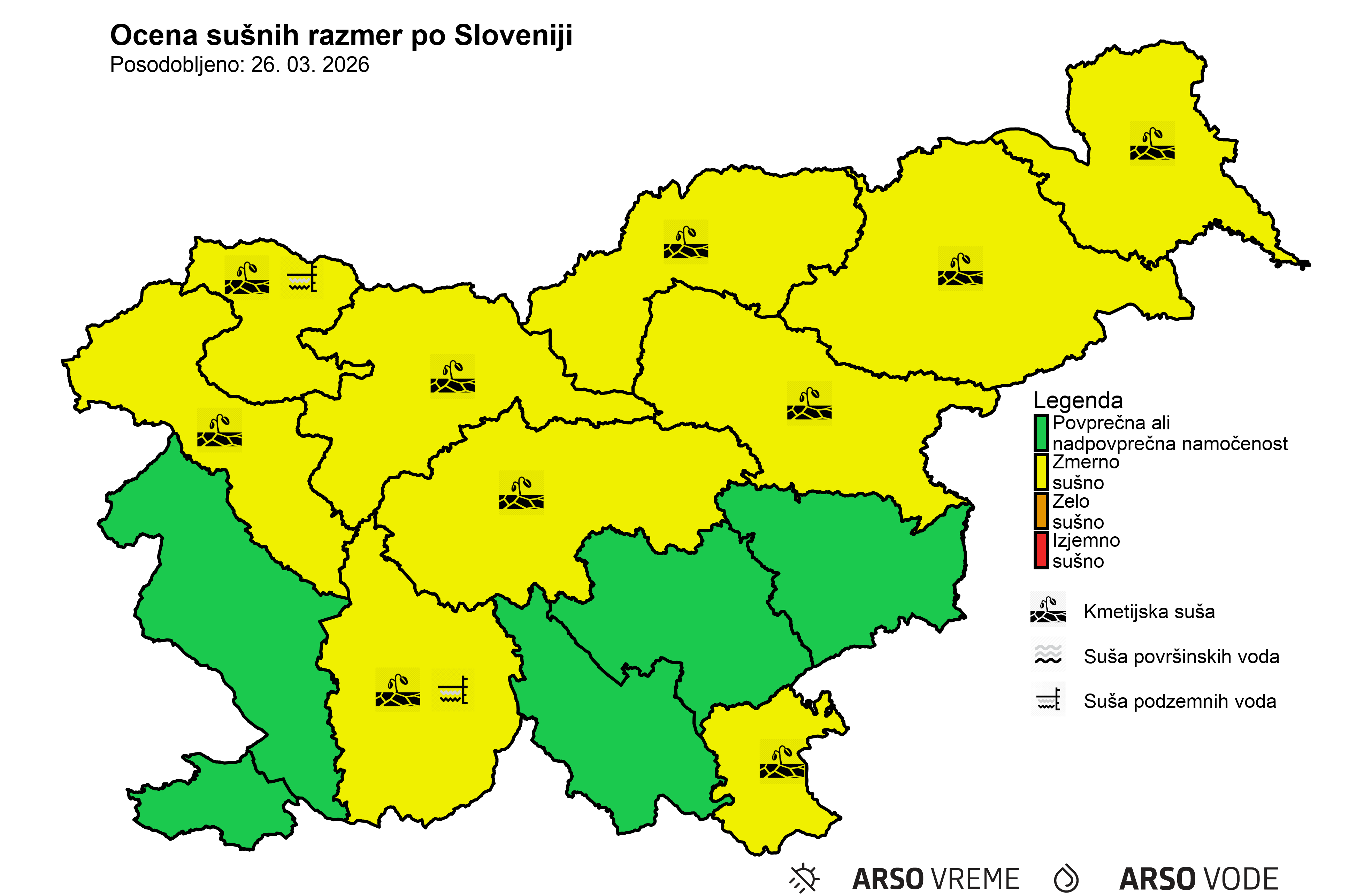 podlagi podatkov, ki so v dometu in upravljanju ARSO. Področje sušnih razmer, grafična ikona na
