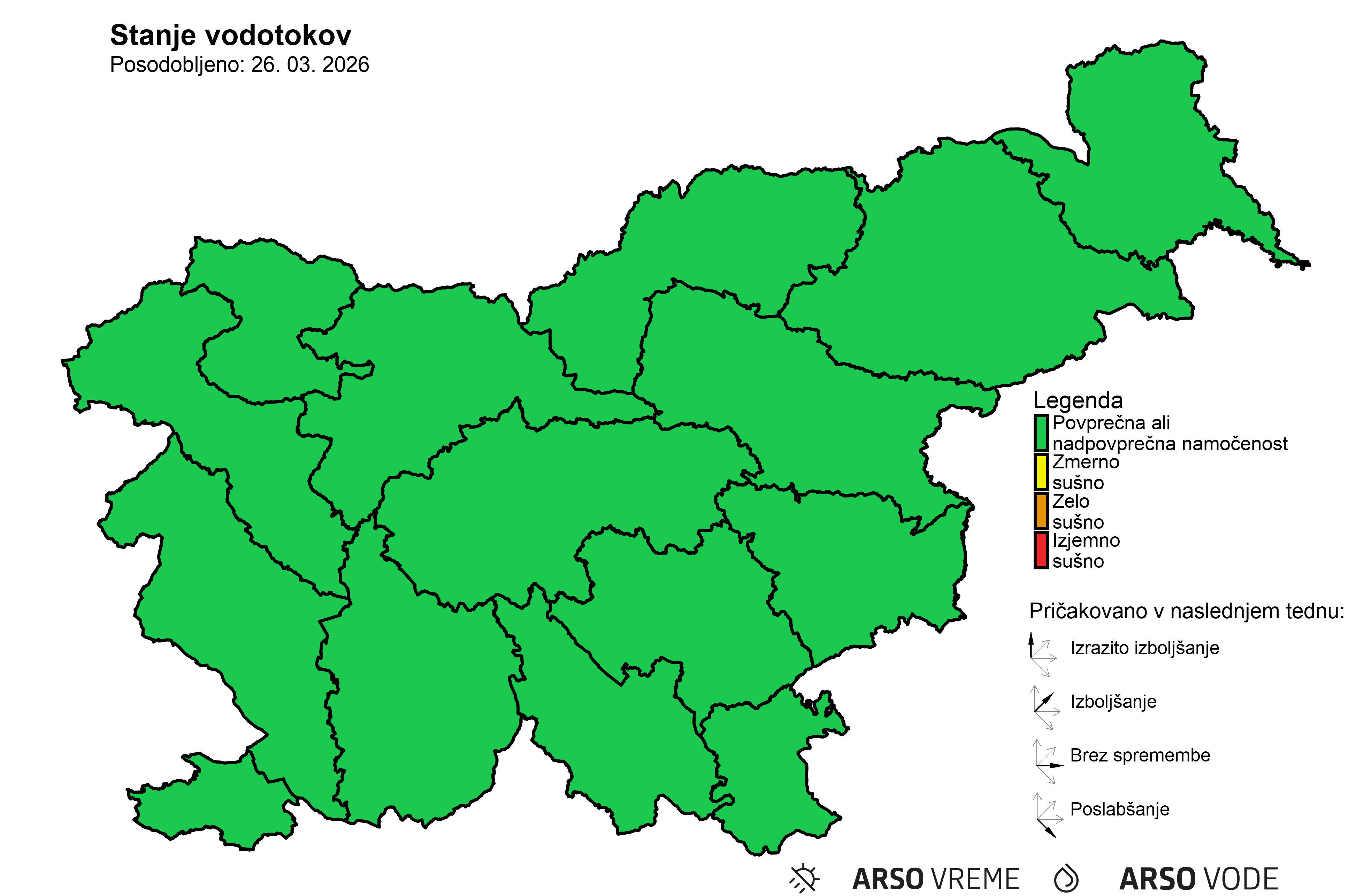 hidrološke napovedi. Trend izboljšanja ali poslabšanja stanja se nanaša na predvideno stanje ob koncu