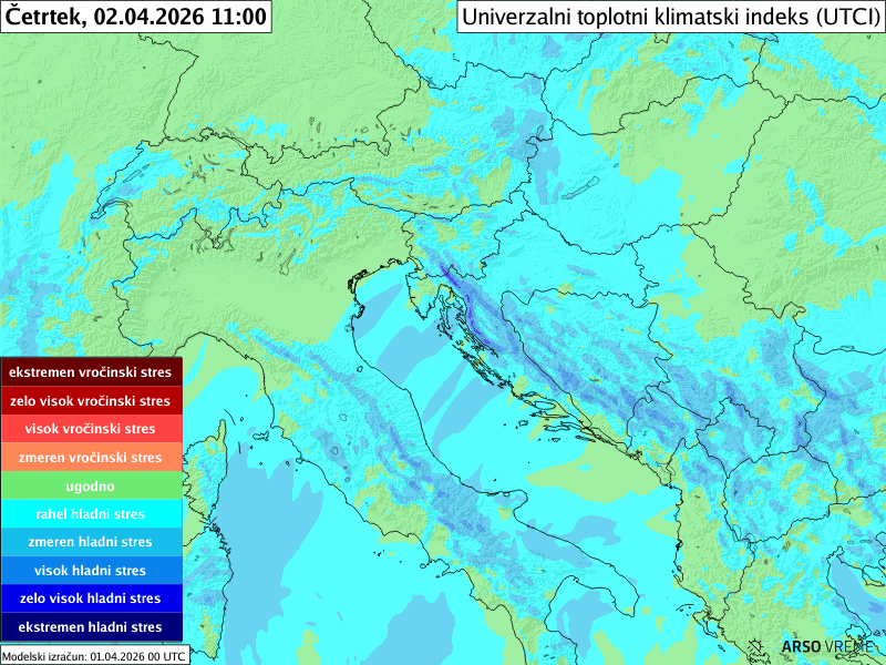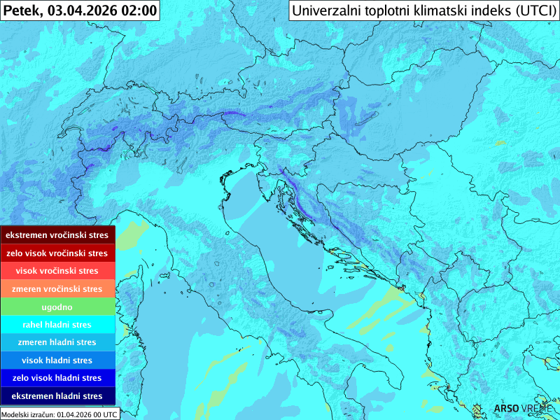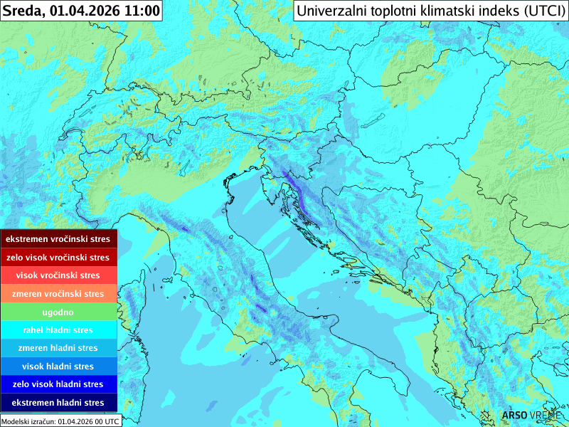 Številske vrednosti na območju Slovenije prikazujejo najvišje dnevne vrednosti UV indeksa ob jasnem vremenu za sinoptične postaje Bovec, Kredarica, Lesce, Ljubljana, Maribor, Slovenj Gradec, Murska Sobota, Nova Gorica, Vojsko, Portorož, Postojna, Ilirska Bistrica, Črnomelj, Novo mesto in Lisca. Izračunane vrednosti so pridobljene iz servisa UV sevanja Nemške meteorološke službe DWD.